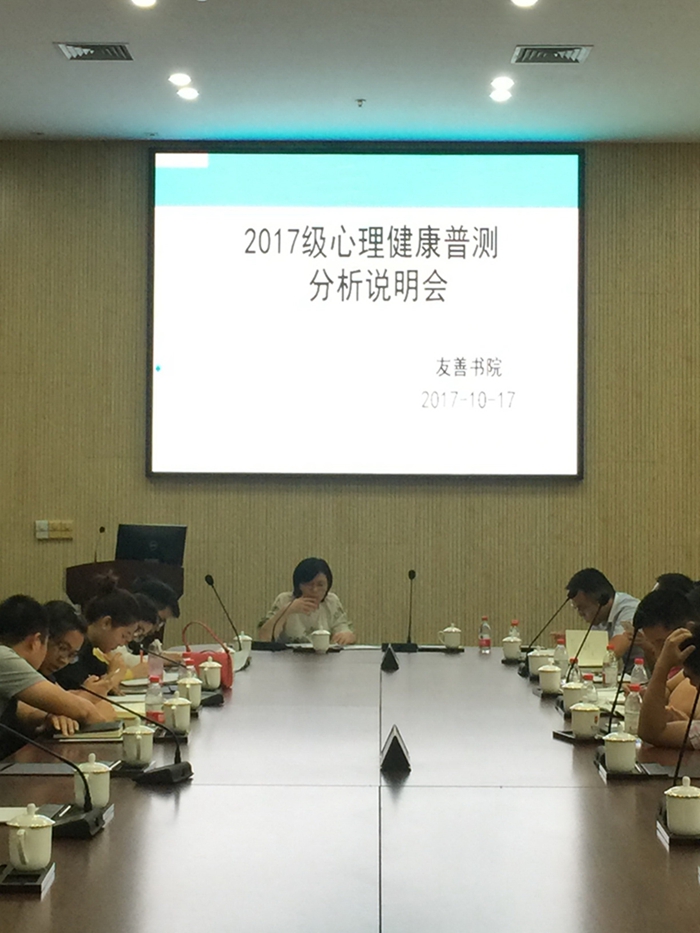 10月16日至10月17日心理中心蔡丽煌和白卫红两位老师分别到友惠书院与友善书院对辅导员开展了新生心理普测结果分析说明会。