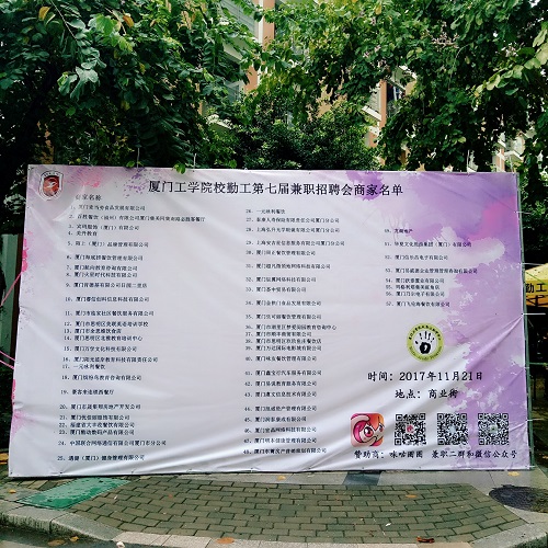 在前期宣传中,积极联络学校其他组织进行广泛的校园传播。活动当天勤工中心组织大家在各校门口迎接商家,并协助商家进行摊位摆放、招聘宣传。