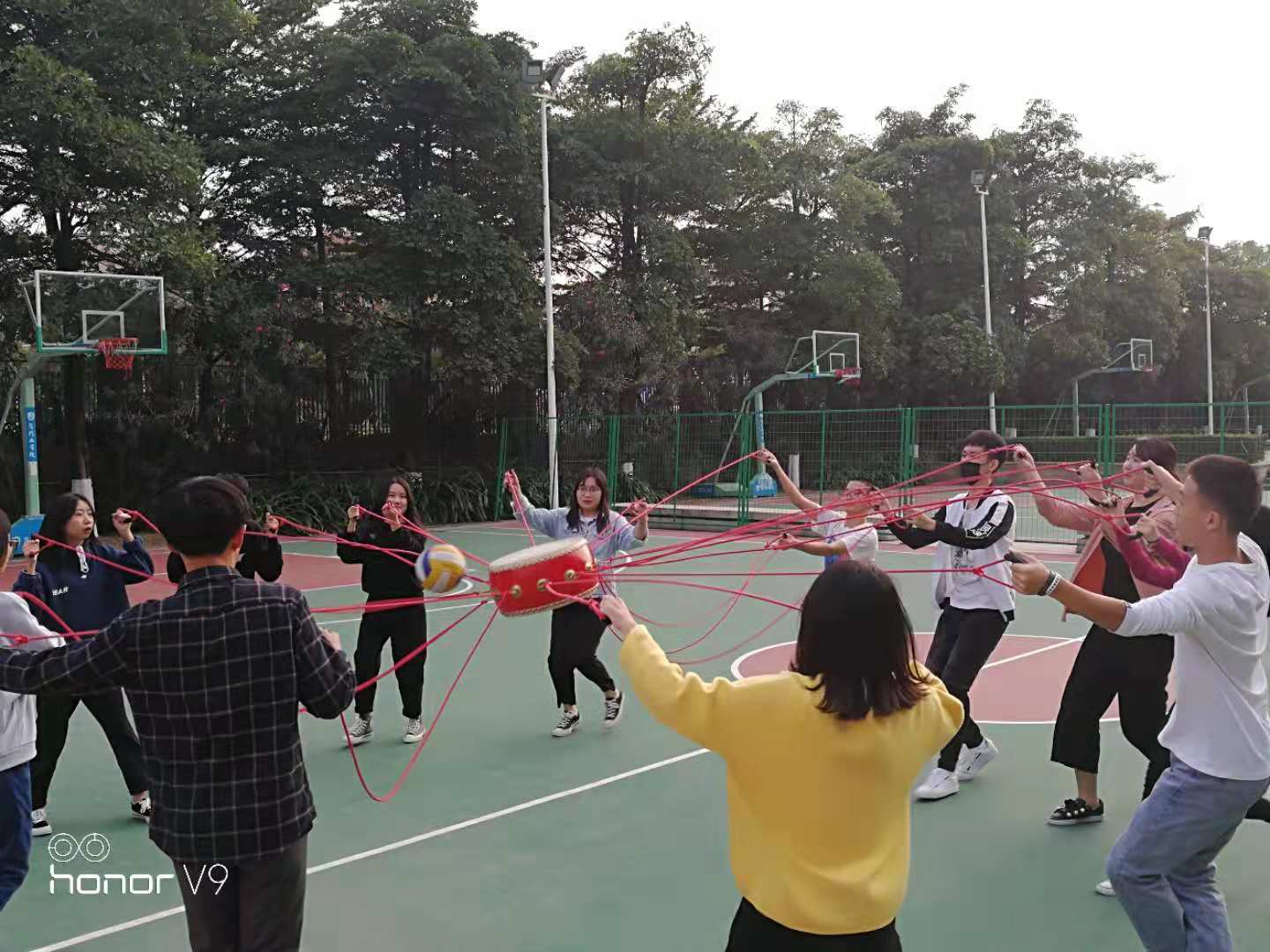 本次活动共分为四个游戏环节,第一个环节是让大家快速熟悉起来的破冰环节,白老师用“马兰开花”这个游戏让大家在热烈的气氛中找到了与自己有缘的同队队友。大家用最快的速度定出了自己队伍的名称,队长以及队伍口号。第二个环节是充满挑战的团队大作战项目,名字叫做“团结友爱鸳鸯板”,在正心大厦后面的篮球场,同学们用鸳鸯板进行比赛,同样的路程用时最少的队伍为获胜组。在这个环节,大家只有完全同步,才能走出最佳得成绩。第三个环节是“齐心协力同心鼓”。在这个环节中,每组的十三个队员全部要上,让大家感受到自己是团队里不可或缺的存在。最后一个环节是“你来比划我来猜”,面对成语的同学不能说出成语中的任何一个字,比划着让背对着成语的队友猜出屏幕上的成语。这个环节很大程度上锻炼了同学们的语言表达能力以及与人的沟通能力。