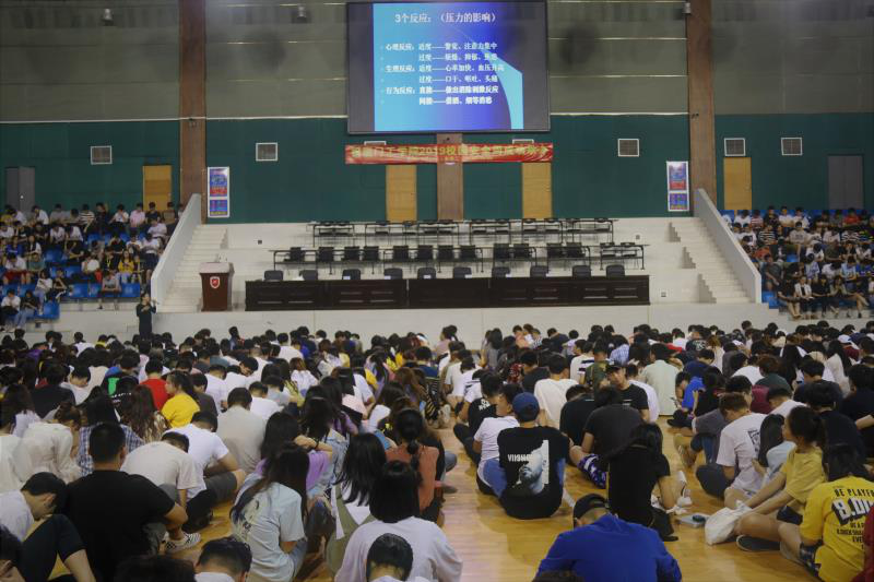 5月21日下午3:00,我校于星空app官方版官方版下载体育馆室内篮球场内举行了一场以“压力应对与情绪调控”为主题的安全周讲座,讲座由我校心理中心指导老师——蔡丽煌老师担任主讲人。